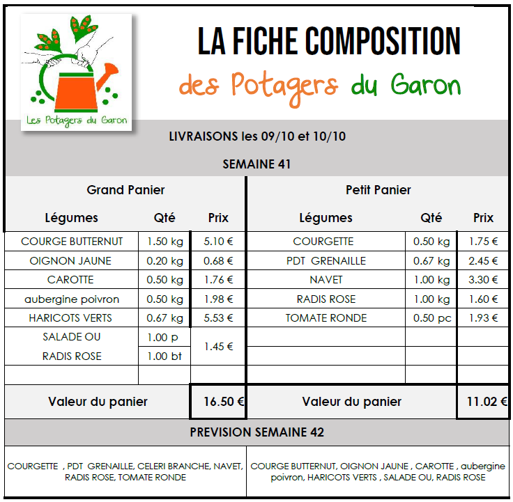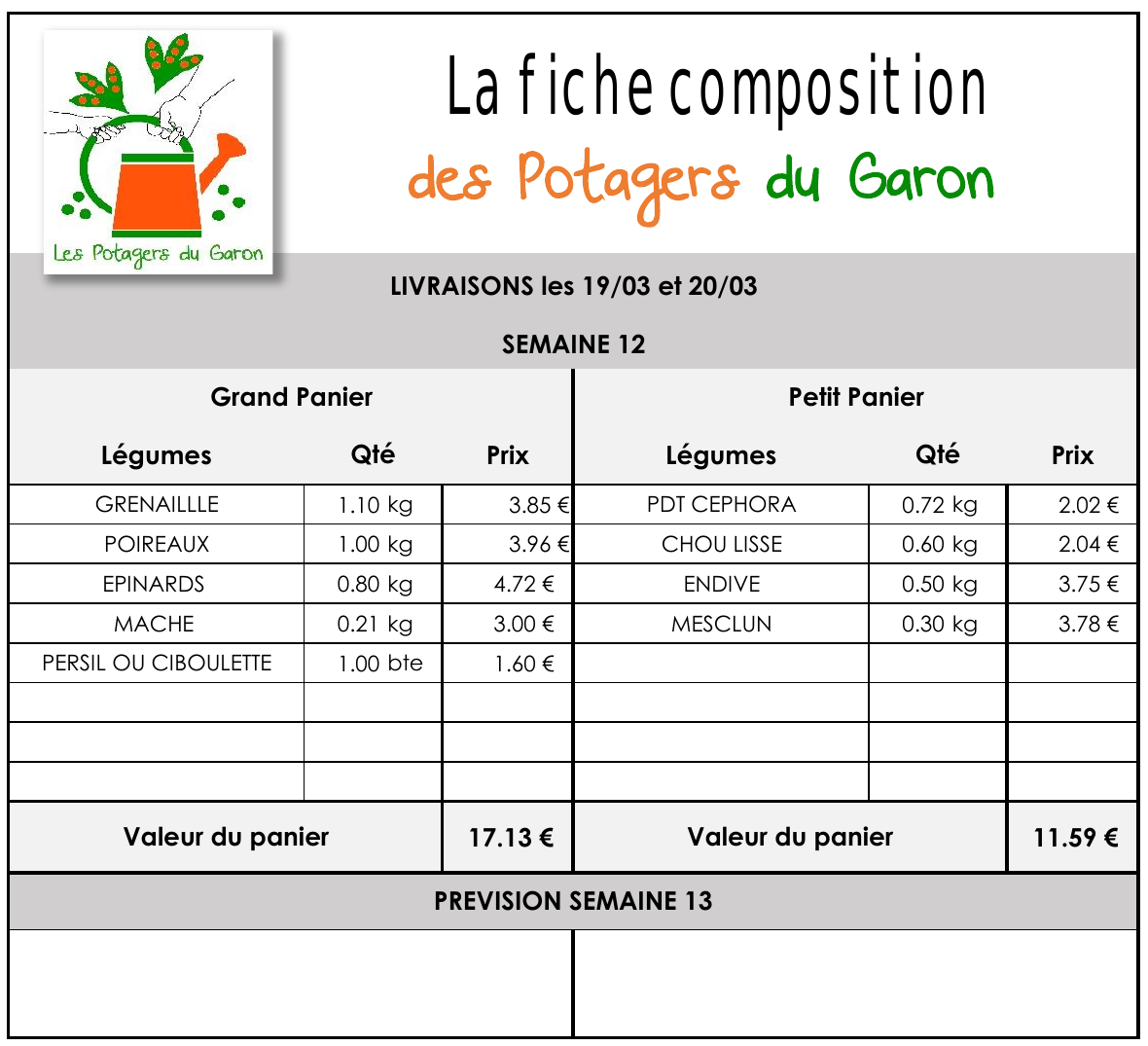 Vous trouverez ici chaque semaine la composition de votre panier :-)