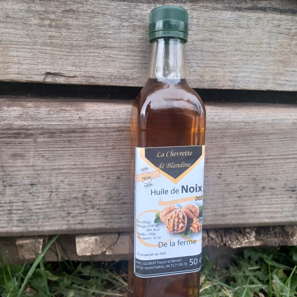 Bouteille d'huile de noix 100% noix produite par l'EARL Gilibert à Montmirail (Drôme)